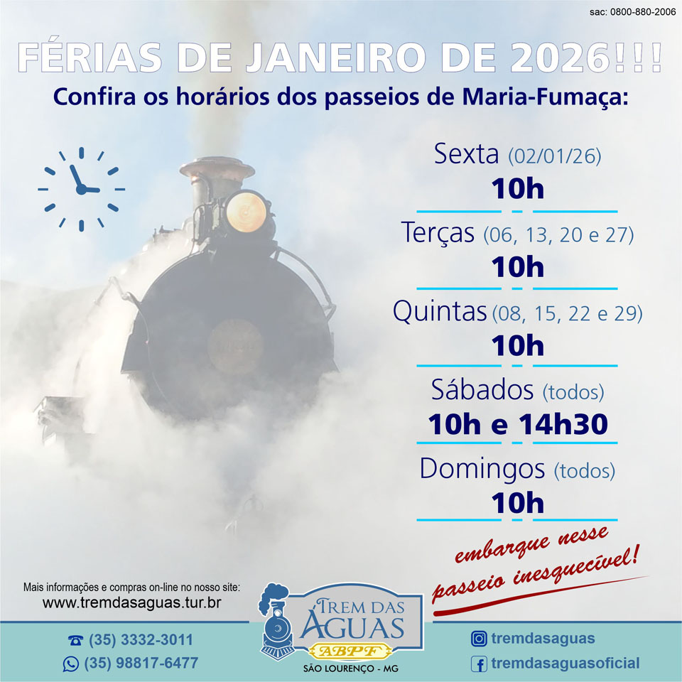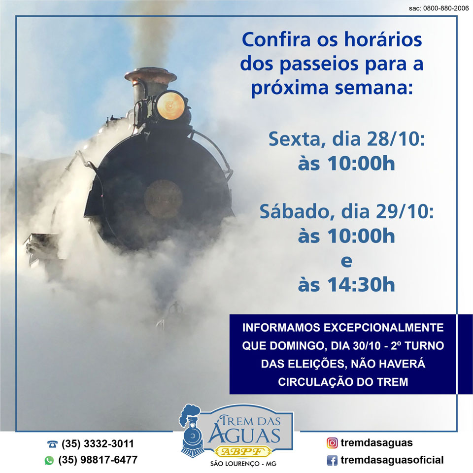 O Trem das Águas está funcionando! Estamos prontos para recebê-los com toda a segurança e carinho!
